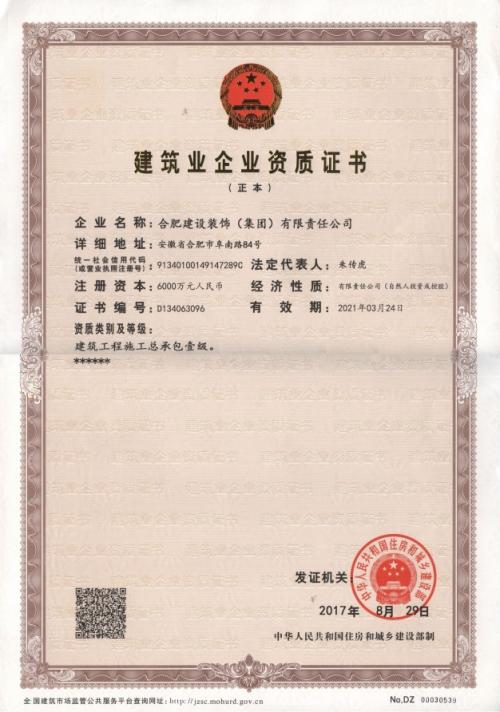 上一条:修建装修装饰工程专业承包壹级/防水防腐保温工程专业承包一级/修建幕墙工程专业承包一级/市政公用工程施工总承包二级/石油化工工程施工总承包二级