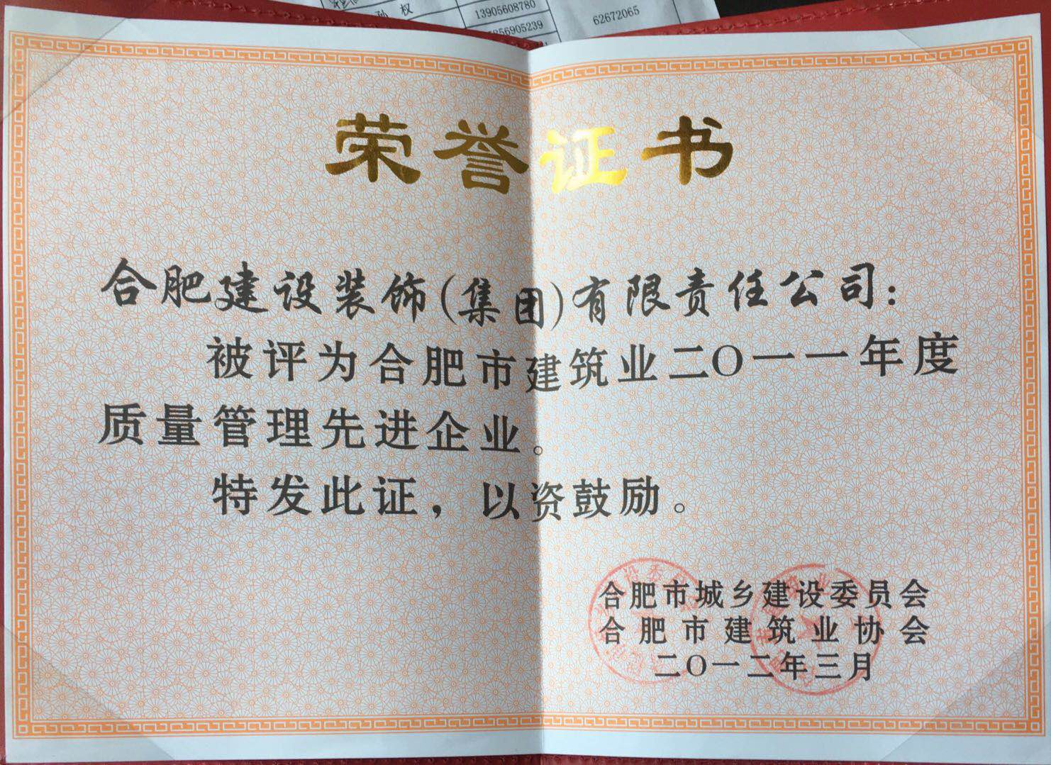 接待会见合肥建设装饰(集团)有限责任公司!