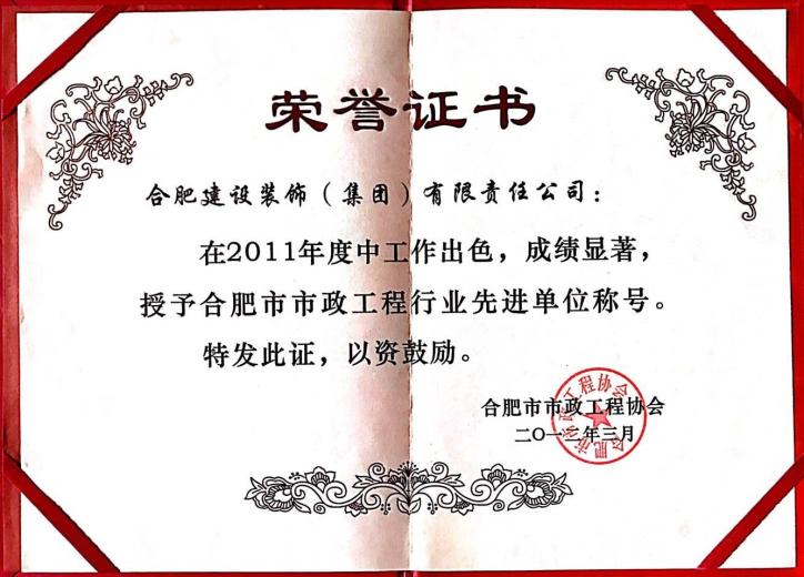>2011年合肥市市政工程行业先进企业