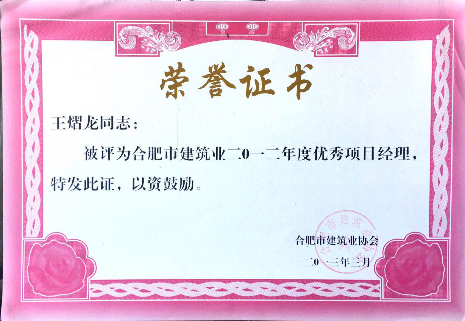 >2012年度优异项目司理王熠龙