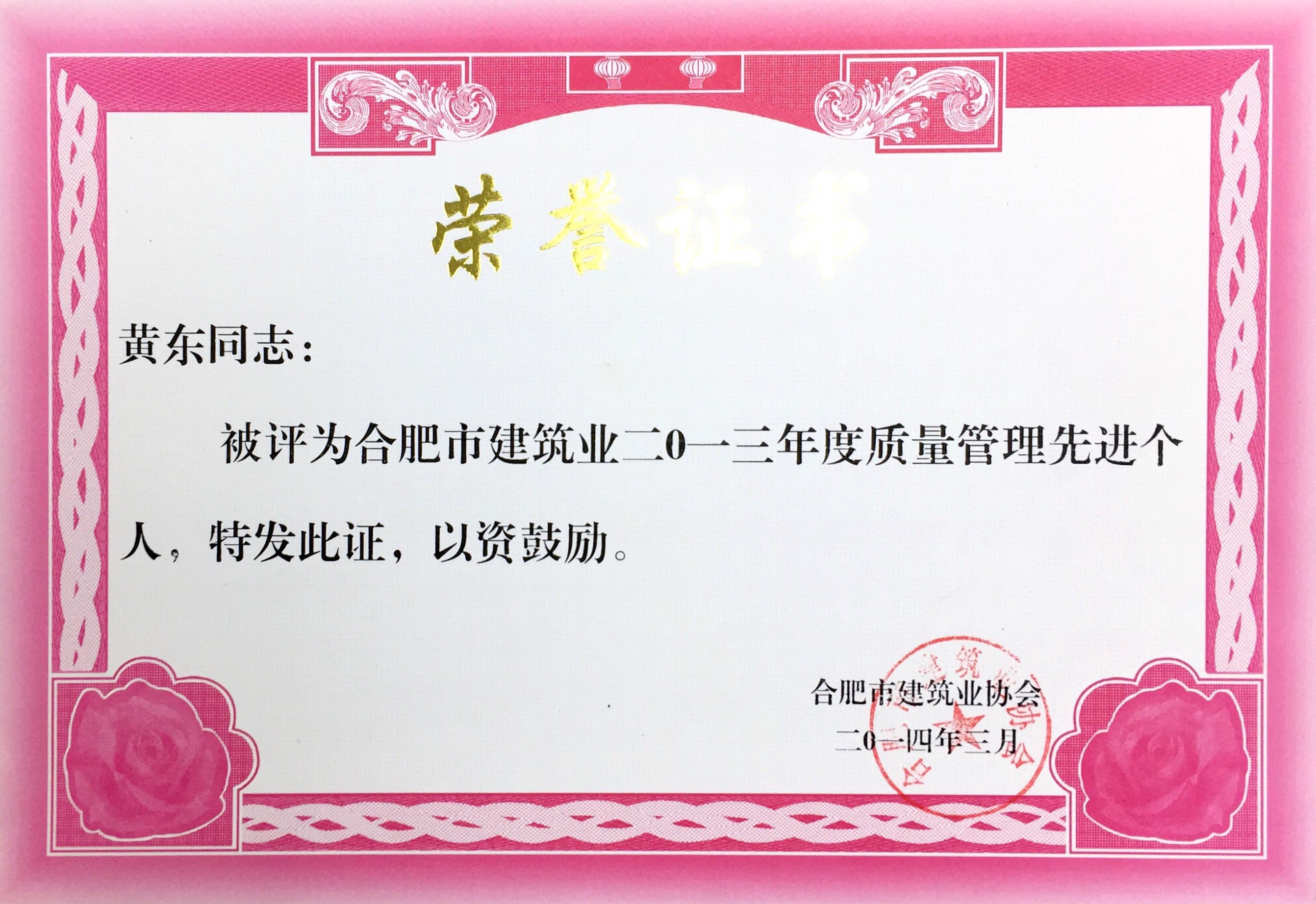 >合肥市修建业2013年度质量治理先进小我私家——黄东