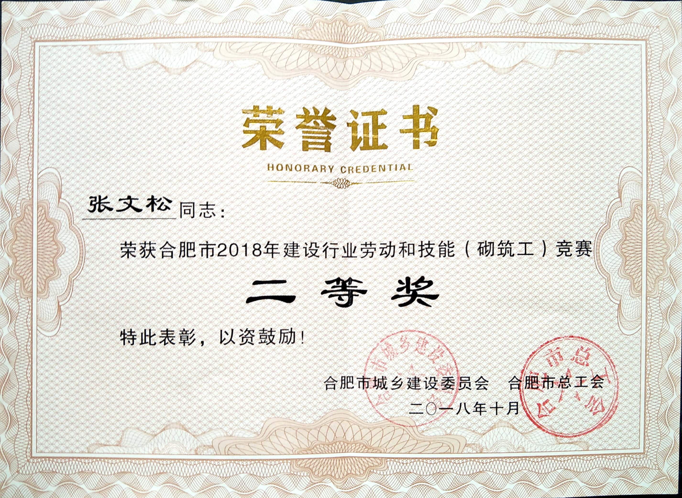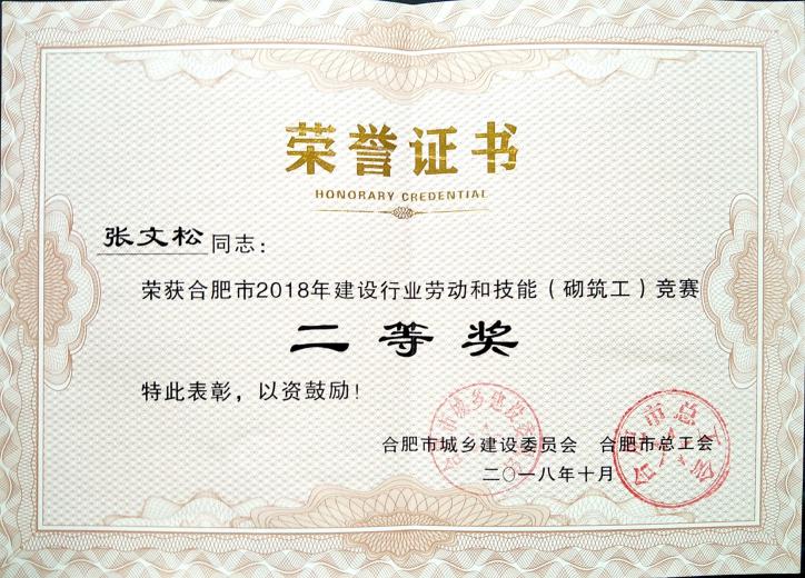 >2018年建设行业劳动与手艺砌筑工--二等奖