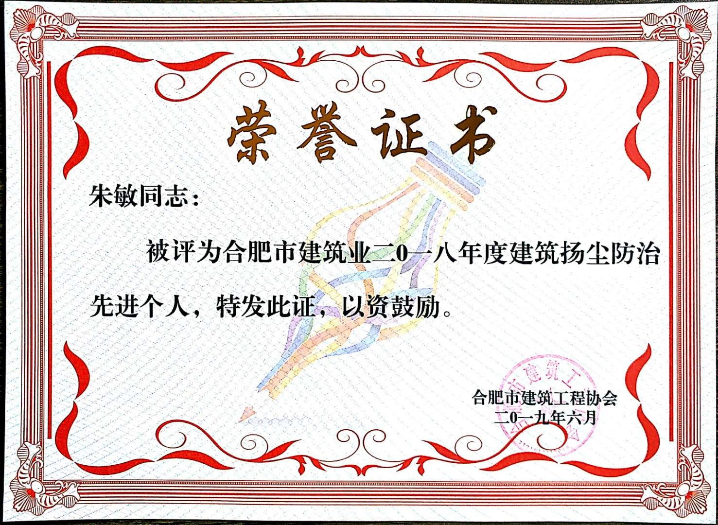 >朱敏2018年防尘优异小我私家