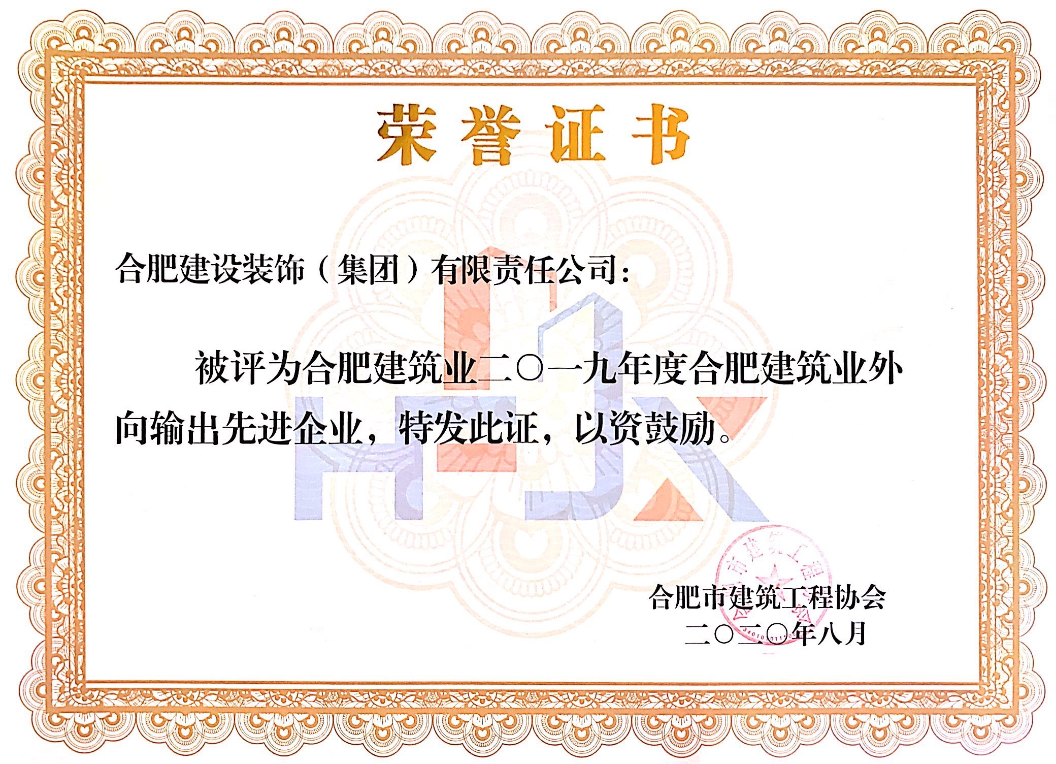>2019年度合肥修建业外向输出先进企业