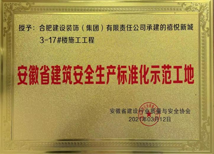 >禧悦新城3-17#楼施工工程——安徽Jackpot筑清静生产标准化树模工地奖牌