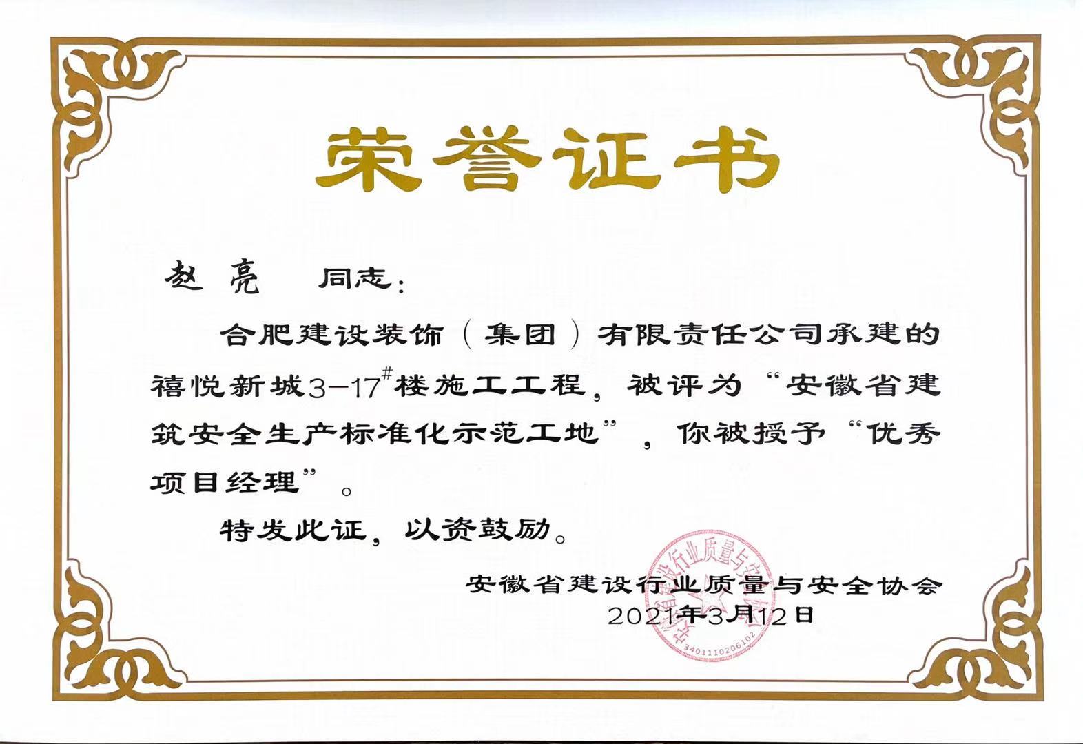 >禧悦新城3-17#楼施工工程——赵亮——优异项目司理