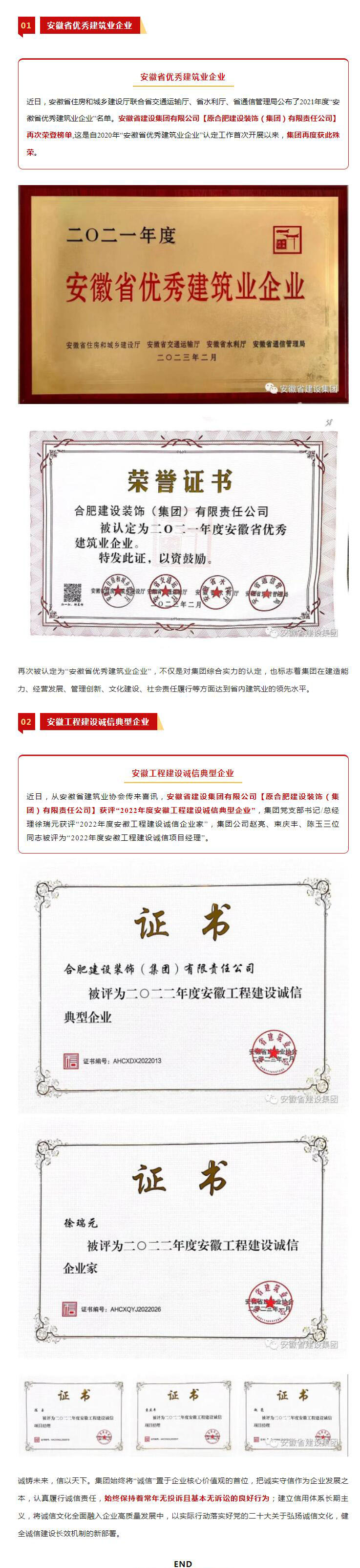 >喜报 | 集团再次荣获“安徽省优异修建业企业”等多项声誉
