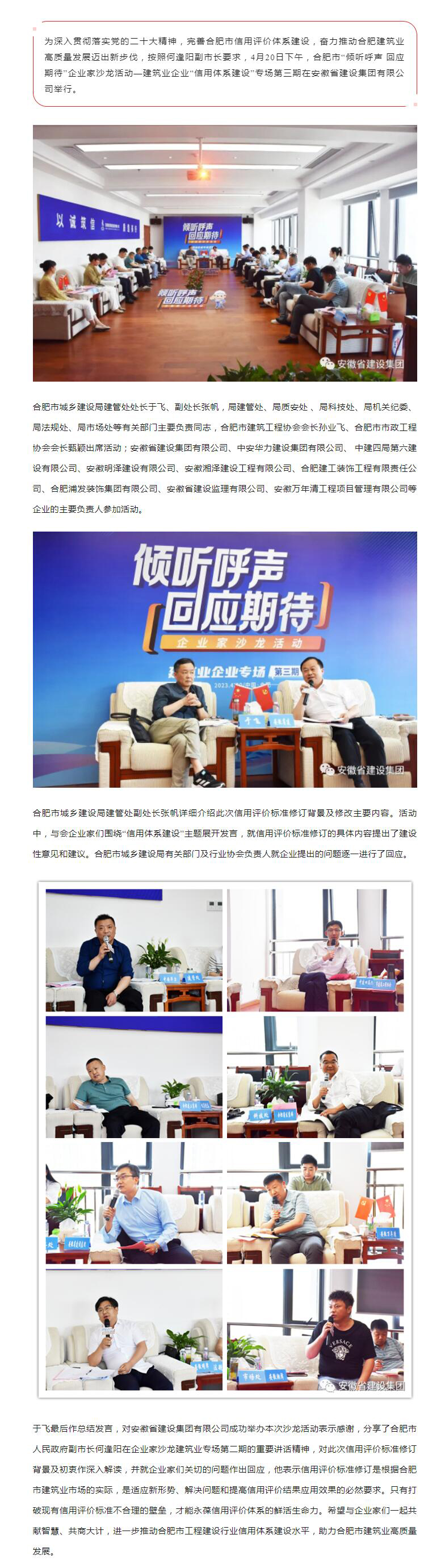 >合肥市“谛听呼声 回应期待”企业家沙龙运动在集团举行