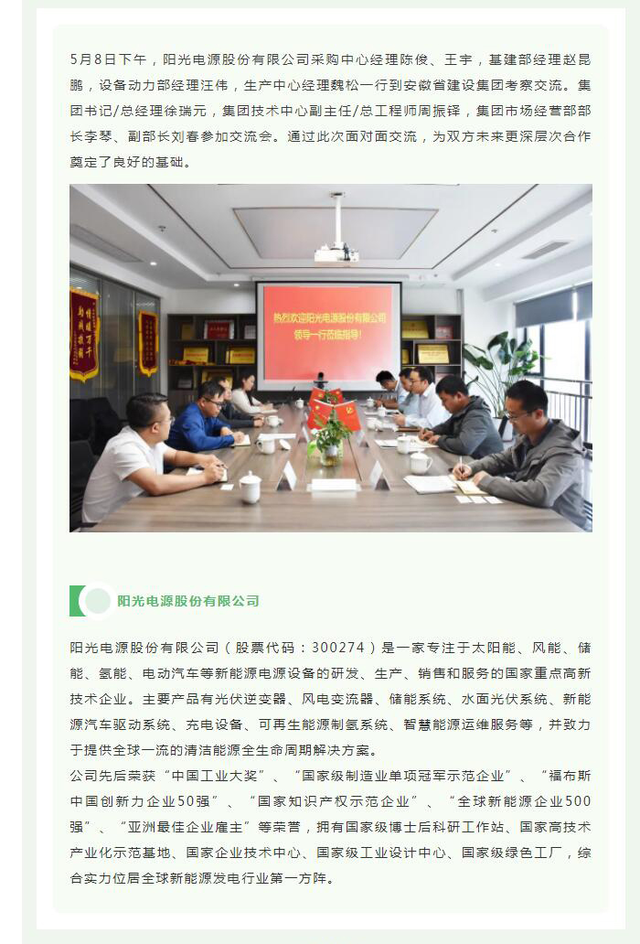 >阳光电源股份有限公司到集团考察交流