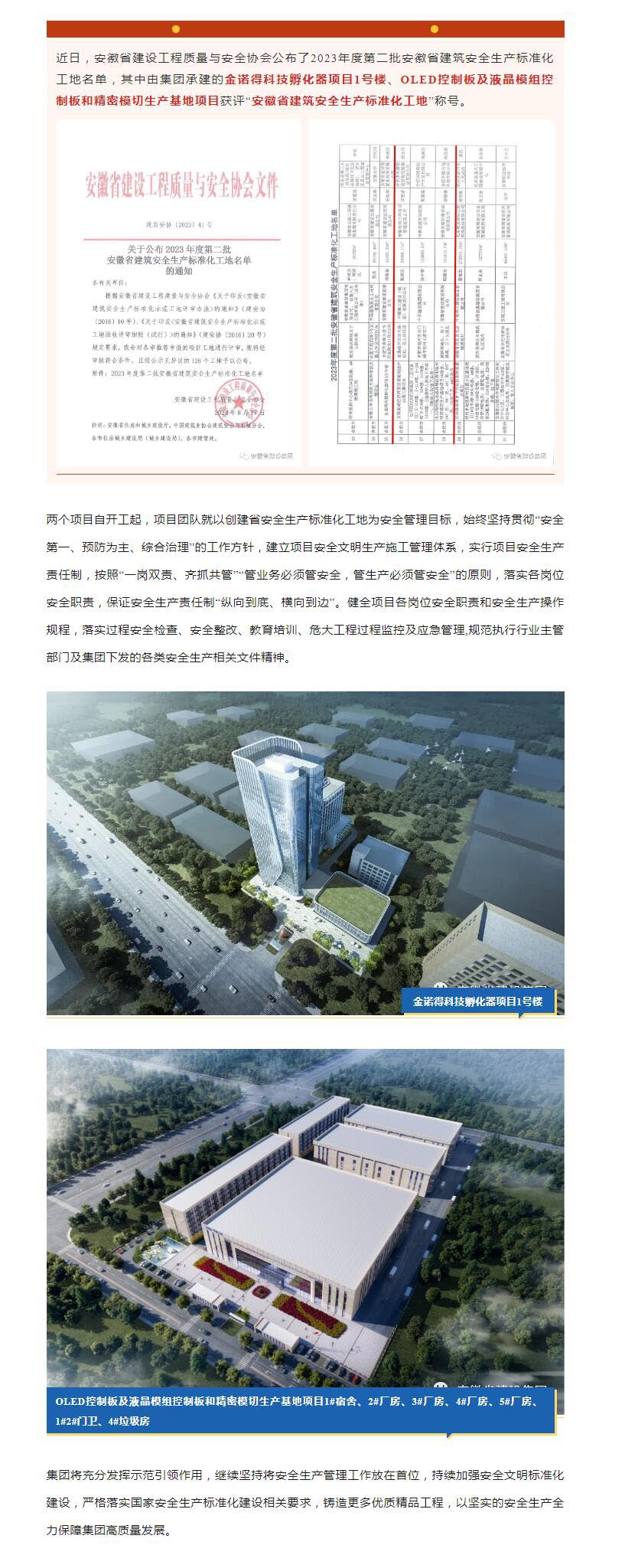 集团新增两个“安徽Jackpot筑清静生产标准化工地”