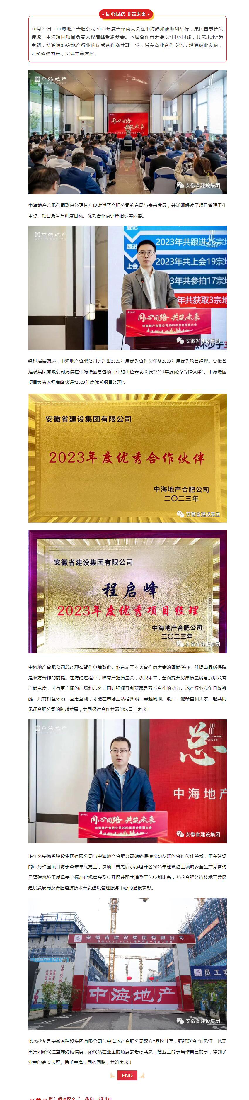 >同心同路 共筑未来|集团荣获中海地产合肥公司2023年度优异相助同伴