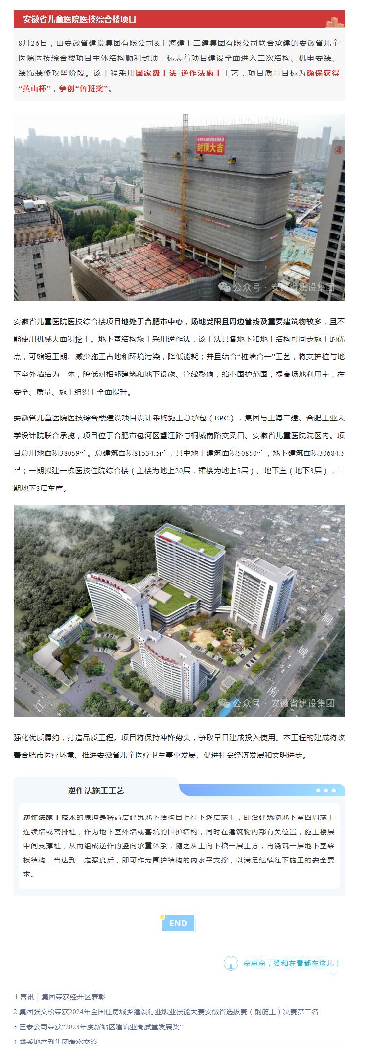 >喜讯 | 安徽省儿童医院医技综合楼项目主体结构顺遂封顶